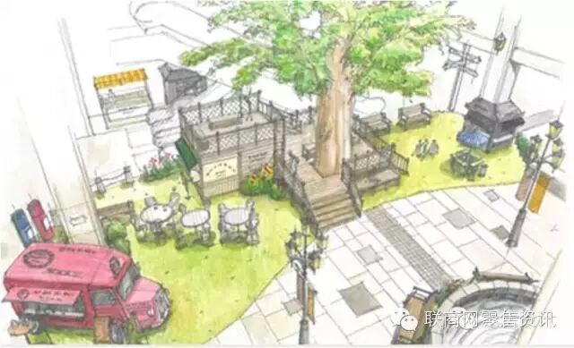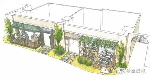 突破传统的店铺装修风格,商铺打破橱窗的隔断,形成开放式的店铺设计,贯穿整个街区,橱窗及各具特色的外摆以及绿植的设计彰显出店铺的个性。使商户与消费者的互动更为趣味直接。流畅的店铺交接及绿植小品的互为延伸,让店铺与空间环境融为一体,形成“店即景,景即店”的和谐交融。