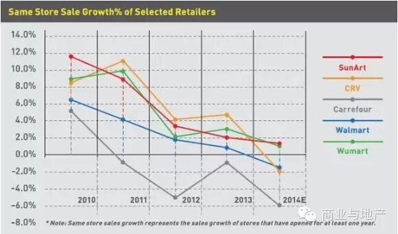 受到整体环境的拖累,许多大型连锁超市的同店销售增长率(SameStoreSalesGrowth)都在下降。