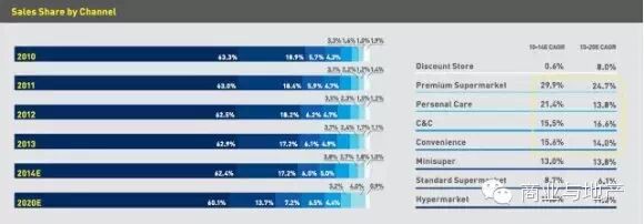 根据KantarRetail的监测,大卖场依然占中国零售业所有业态销售额的62.4%,但是它的增长相对于其它渠道而言已经显得后劲不足。由于竞争加剧,以及租金和人力成本不断上升,不少大卖场的净利润率开始下降。