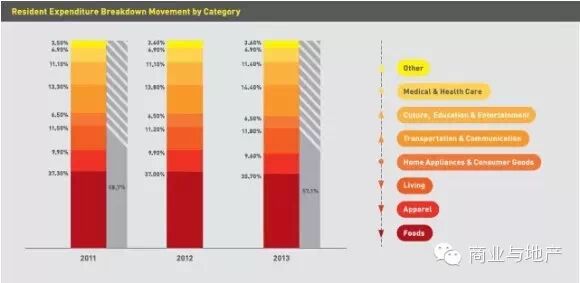 随着中国消费者的生活水平不断提高,生活必需品和日常消费品方面的支出占家庭总体支出的比例开始降低。与之相反,与交通、通讯、文化、教育和娱乐相关的产品和服务将占据中国家庭支出的更大比例。
