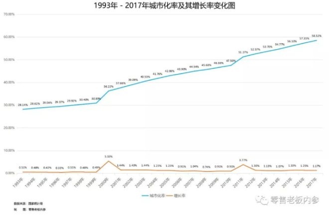 1993年-2017年城市化率及其增长率变化图