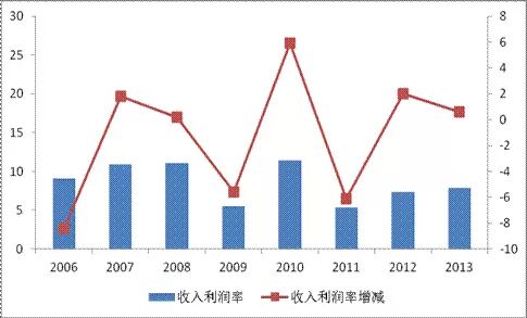 图 19 2006-2013年物流企业收入利润率情况(单位:%)