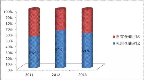 2、仓储保管外包比例有所下降。从仓储面积看,工业、批发和零售业企业平均仓储面积为4.9万方米,其中:自有仓储面积2.0万平方米,租用仓储面积2.9万平万米,租用仓储面积占比为59.9%,比上年同期下降4.7个百分点。