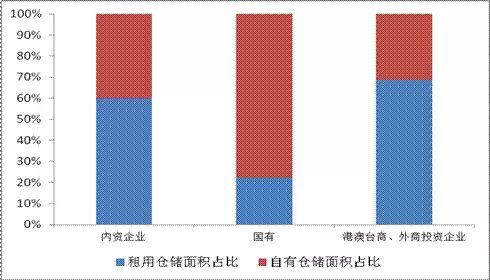 从不同登记注册类型看,港澳台商投资企业、外商投资企业仓储外包比例明显较高为68.8%,内资企业为59.8%,其中国有企业仅为22.4%。