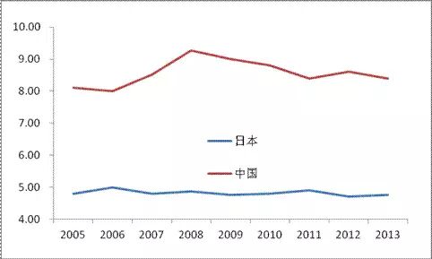 图 8 中日物流费用率情况对比(单位:%)