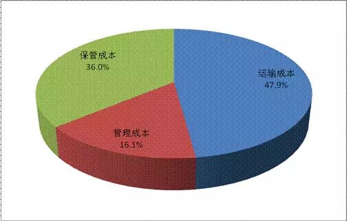 2013年工业、批发和零售业企业物流成本中,运输成本占47.9%,比上年降低2.3个百分点;保管成本占36.0%,比上年提高2.3个百分点;管理成本占16.1%,与上年持平。