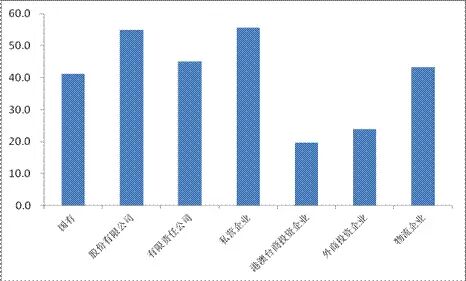 图 10 工业、批发和零售业企业对外支付物流成本占比情况(按登记注册类型分)(单位:%)