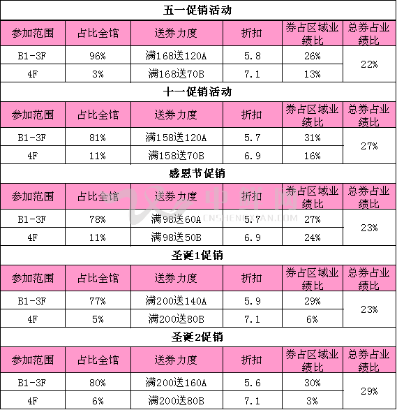 (某年各档送券促销券占比参考表赠礼促销笔数预估计算)