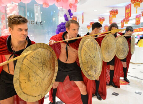 1、宜兴华地,溧阳八佰伴请来的欧美男模,斯巴达勇士,雕塑般的面庞,给我们的女王归来,不一样的视觉感受。