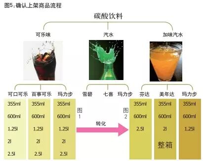 品类经理在开始进行货架陈列前,需要对不同类型的门店组合确定不同的需要上架的商品清单。这些商品清单可以从商品组合和选择的流程中确定。(如图5所示)