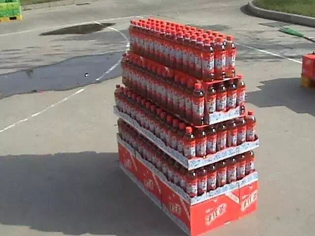 一般为3~4层,大规格在下层,小规格在上层,价格标签及宣传贴应贴在箱体上,不要贴在瓶体上。