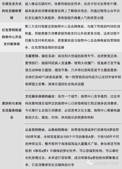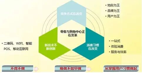 智能手机的普及,为消费者购物提供了更多的便利性。购物中心宣传渠道从线下到线上的渗透,或者说两者相结合的方式,其实是消费者消费行为的变化。购物中心服务的对象是消费者,紧跟消费者,才能做到真正为消费者服务,留住购物中心的客流。