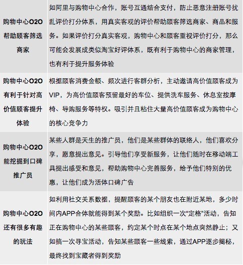 O2O模式下,线上强大的数据整合能力、即时的信息展示和推送能力、大范围的讯息传播能力等能够有效地辅助购物中心开展营销