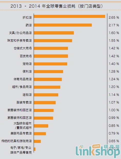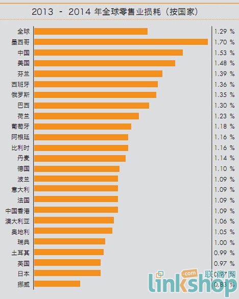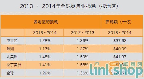 据最新出炉的全球零售偷盗调研报告指出:去年,全球零售销售额平均损耗比率为1.29%,损耗值总计1,285.1亿美元。