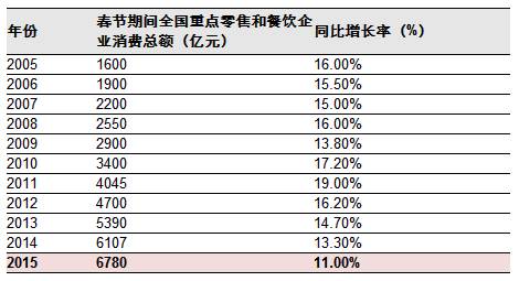 2015年春节黄金周,全国消费市场呈现平稳较快增长态势。勤俭节约、文明健康、绿色低碳的消费理念日益深入人心,传统年货、信息产品、大众餐饮、文化休闲等成为节日消费亮点。