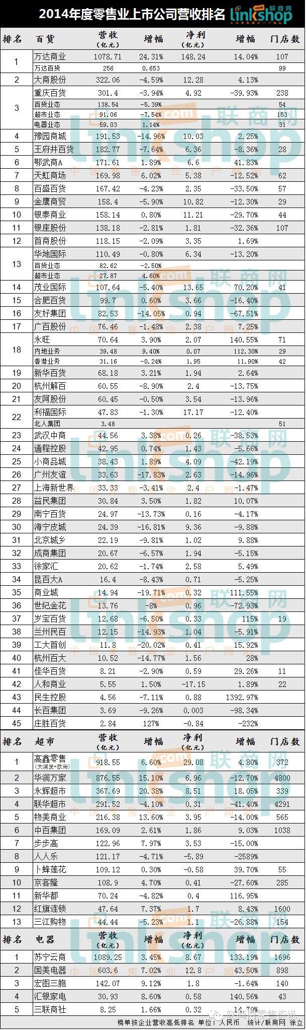 3.尚有14家零售上市公司未公布年报,联商网将陆续更新。