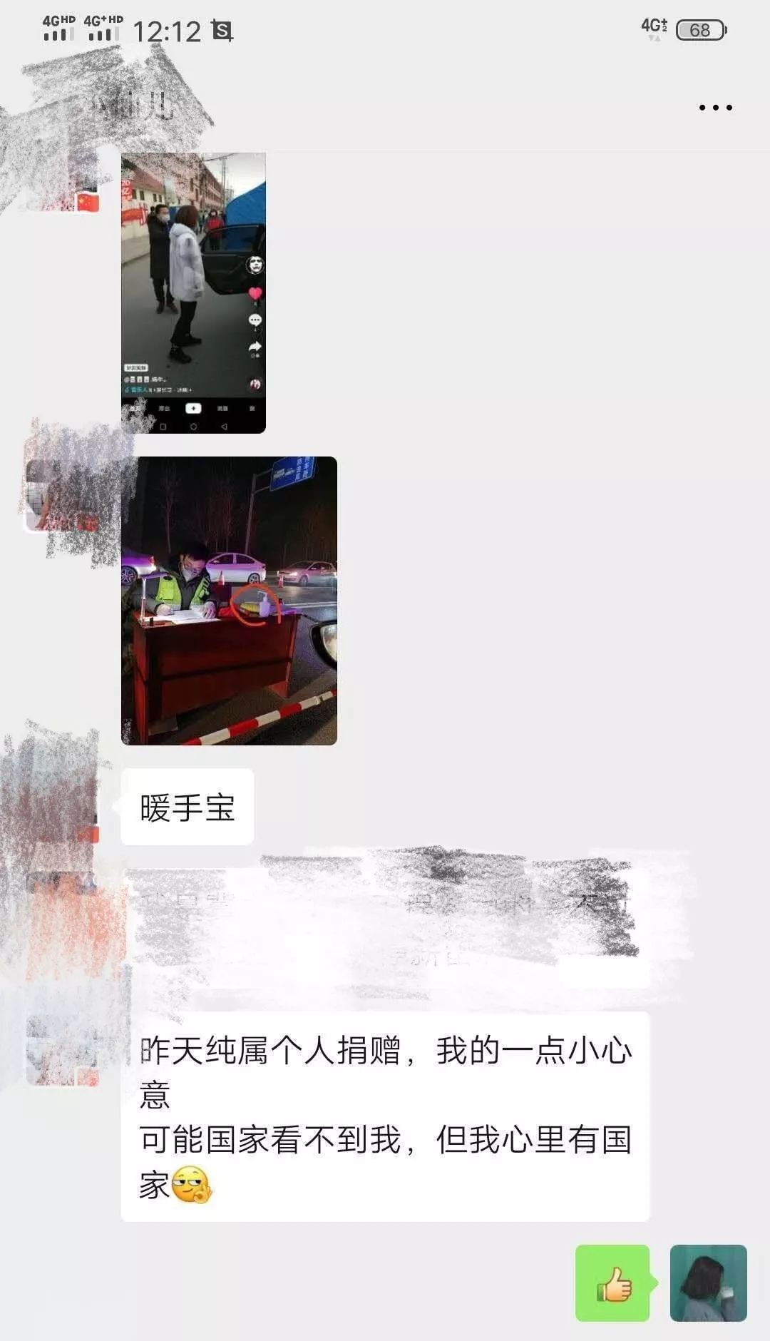 最近,有一位顾客微信联系到购物广场张文雅经理,想要买暖宝。张经理马上就和供应商联系,可由于特殊时期,问了几家都没货。在给顾客回复时,才知道顾客买暖宝不是自己用的,而是想捐给小区路口执勤的工作人员,现在天那么冷,他们24小时值班,顾客想买些暖宝使他们在夜里暖和一些。张经理被这位顾客感动了,心里想一定要帮助这位顾客实现他的心愿。
