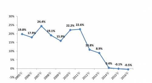 据有关统计,连锁百强企业业绩,自12年出现行业拐点,一直呈现下行趋势,最近三年更是严重低迷,16年呈现负增长。
