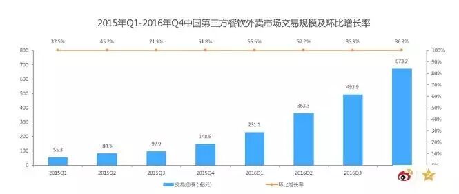 近日,比达咨询(BigData-Research)发布2016年中国第三方餐饮外卖市场研究报告。报告显示,2016年国内外卖市场保持着快速增长的态势,整体交易额达1761.5亿元,较2015年全年382.1亿元增长361%。