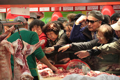 店庆之前,我们确定了“卖需求、卖潮流、卖健康、卖文化”的营销路子,一方面紧贴居民的需求,一方面适度超前做引导,从而牢牢地掌握了主动权。顾客关注健康,我们就请《健康一身轻》的专家来做见面会,通过专家对山药养生的传播,我们深化山药品类,从高端的野生毛山药、营养丰富的铁棍山药到普通的水山药,甚至山药豆全系列引进并推广,店庆期间销售2.7万斤,销售9.5万元;针对铁岭地区民俗文化,则以“秋季进补食羊肉”为切入点,抓源头直采,重点引进新鲜羊腔365头,近18000斤,销售46万元。通过店庆,集团时代特色、当地特色、兴隆特色三个特色经营理念深入每个员工的心,把单纯的买卖变成情感的维系、信赖的支持、友情的互助,进而迸发出巨大的力量,化作居民的交口称赞和销售的节节攀升。