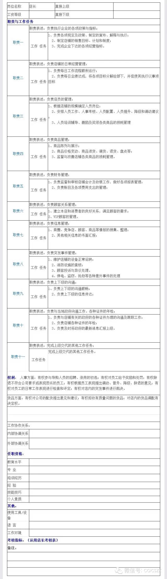 店长工作职责管理表