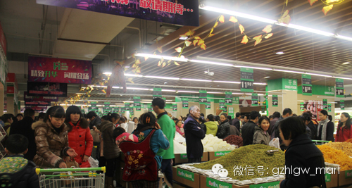 9时18分,集团公司超市管理部副总汪建文开启超市大门,大量市民如潮水般涌进超市,抢购商品,超市内各区域在短短几分钟内充满了人群。