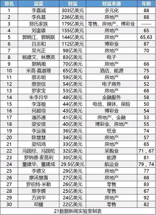 2017《福布斯》香港富豪排行榜:首富仍是李嘉诚
