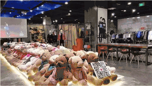 互动:换完衣服可到外面任意拍照,各种道具、饰品任君选择,将“荐人”照片上传,店铺会挑出搭配人气最好的照片,投放在屏幕上,还可参与弹幕互动……