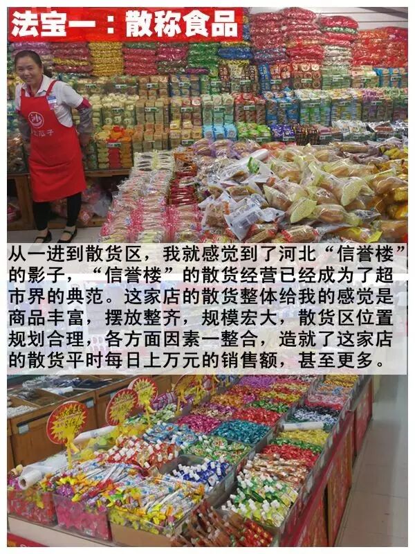 3、“规模宏大”的散称食品区,品种齐全,单品管理水高;