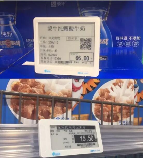 在冰冻、冷藏食品区,对价签的要求很高,在这个低温潮湿的环境中,普通纸质价签很容易呈现湿化的情况,标签所呈现的信息会发生模糊的情况。同时,隔着冷柜玻璃,消费者看价签的时候比较费力。使用ESL价签可以避免这些情况,冷冻ESL标签可以长期在低温条件下工作,且标签显示内容可以根据实际情况进行调整,可以将电子标签想象成一张空白的电子纸,根据实际需要,设计标签上显示的内容信息,在这里,可以将信息内容调大。