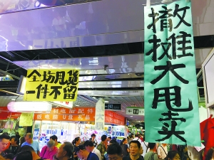 但是记者在现场注意到,也有不少商户喊出了并不低的卖价。消费者抱着关门前“清仓甩卖都是便宜货”的心情来淘货,但事实并非如此。不乏有消费者抱怨,“听说大减价才来的,跟平时价格也差不多啊,有的还更贵”。