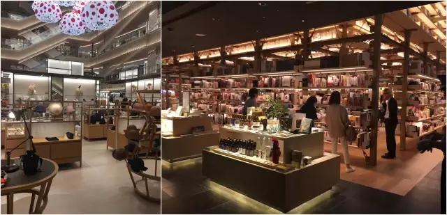 进入茑屋电器一层中庭,立即可以看到一只飞翔的大鸟的雕塑,“飞入”到浩瀚书海之中。从中庭向左是以牛仔色为主色调的箱包区,里面的商品时尚而又简约。围绕着箱包区的,是年轻人喜欢的书籍、杂品和时尚电器设施。这些混搭的内容,却形成了统一和谐生活方式提案。店里类似的生活提案区域很多,并按人文、美等标签划分。所有区域都是左边放置图书右边放置杂品,书籍与商品同频或高频更换,种类不多但款款都是爆品。从书街延伸到商场里面是互动体验区,其中有美食区和美区,美食区主要有烘焙,美区主要有美发。上述这个组合可以说是动静结合,动——用高坪效杂品区引导人流穿梭寻觅,静——用书籍与体验区吸引人驻足品味,从外到内的设计规划堪称业态组合的完美典范。