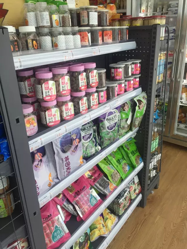 超市内只有靠墙一排L形货架,一台双门冰柜,以及中间一个小货架。货架和货架之间的通道,也只能容纳一个人通行和挑选商品,不过小虽小,商品品类倒挺全的,日用品、酒水、零食、饮料、方便食品等,基本上都有。但和普通超市不一样的是,每一件商品上,都有一个白色的方形电子标签,结款和防盗靠的就是它。