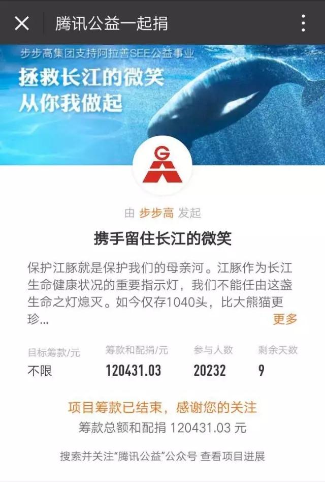 为阿拉善SEE“留住长江的微笑”项目筹集捐款达12.043万元。