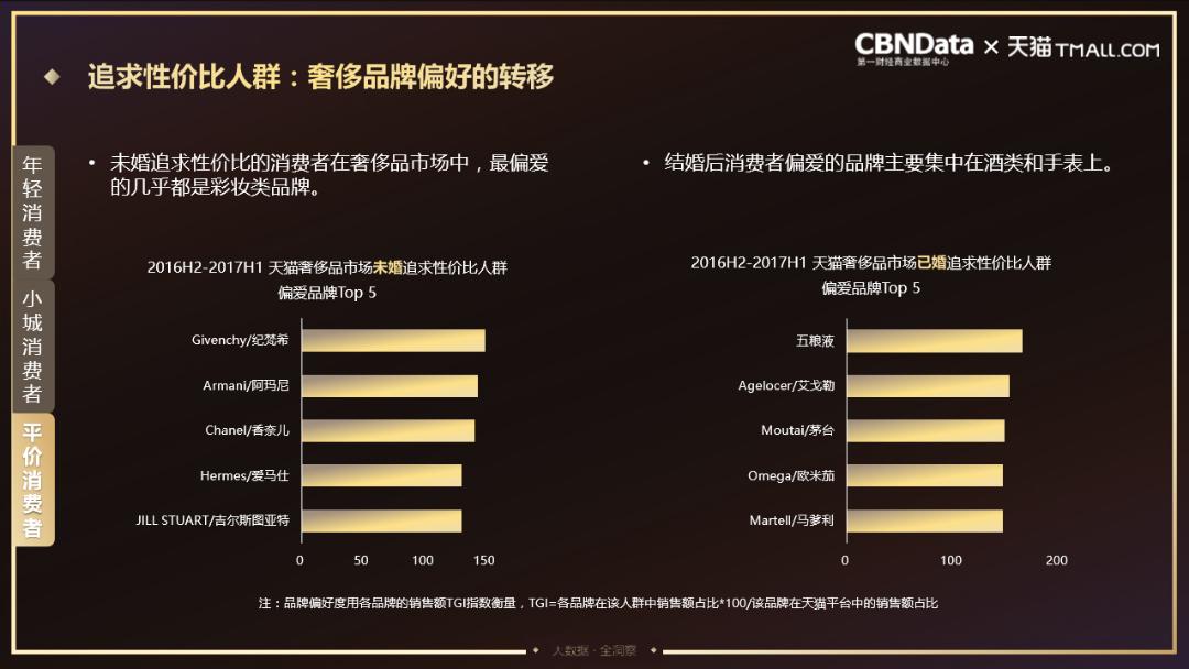 -平价消费者 追求性价比消费人群中未婚居多,婚后则开始注重生活品质