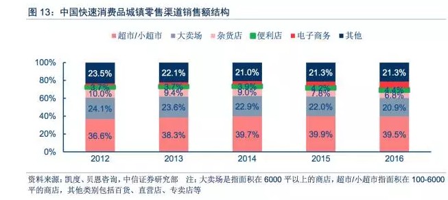 中国快速消费品城镇零售渠道销售额结构,图片来源:中信证券