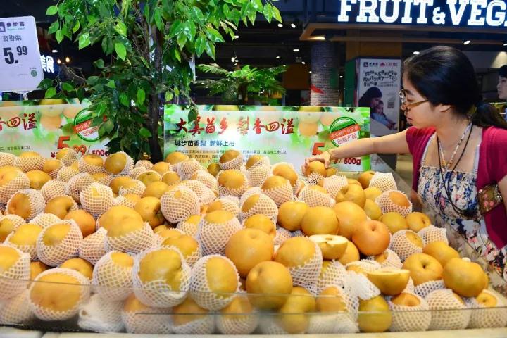 此次在步步高超市门店上市的苗香梨,主要出产于白岩山村的种植基地,全村706人,其中贫困人口70户、252人,是一个典型的少数民族贫困村。为了加快苗香梨的产业发展,城步县把原有的村级苗香梨专业合作社提质升级,推行“合作社+产业+农户”的新模式,并扩大种植规模,目前总面积已达到了2344亩,面积有效覆盖到周边3个乡镇13个村。