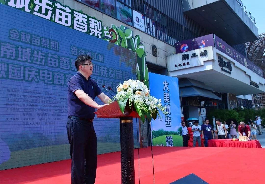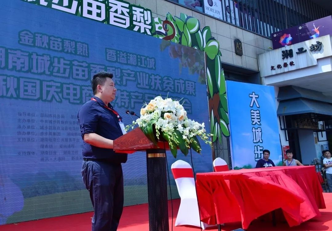 2017年9月24日上午,在长沙市梅溪湖步步高梅溪新天地水秀广场,湖南省邵阳市中共城步苗族自治县委员会、城步步苗族自治县人民政府与步步高集团联合举办了一场别开生面的“金秋苗梨熟,香溢湘江城——首届湖南城步苗香梨产业扶贫成果暨中秋国庆电商农特产品展销会”。