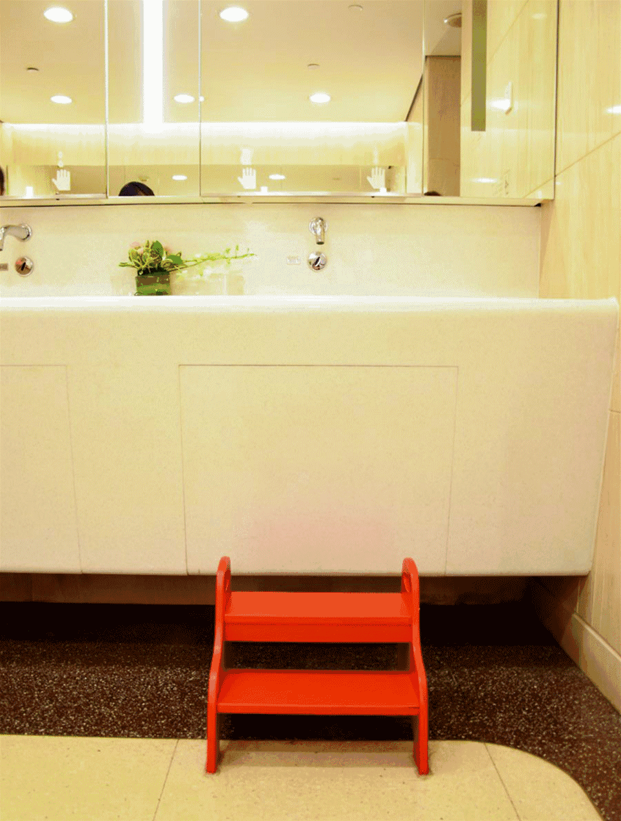 每个洗手间内,也都设置了独立的儿童洗手池。很多事情,孩子是可以靠自己独立解决的,这就是成长的一部分不是吗?