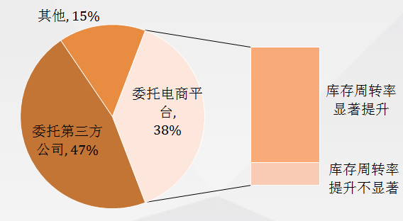 38%的制造企业选择委托网络零售平台进行配送管理。其中,84%的企业认为委托网络零售企业物流配送对于其库存周转率有提升作用。