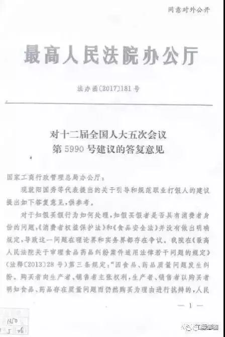 现就阳国秀等代表提出的关于引导和规范职业打假人的建议提出如下答复意见,供参考。