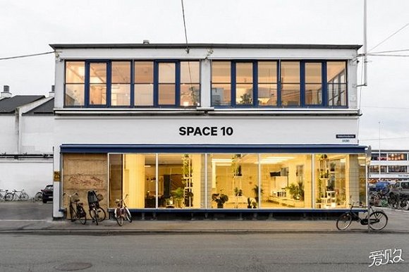 Space 10是一家在哥本哈根的一个未来生活实验室,设计师们将一个闲置的临街鱼市场,改造成了他们的实验中心。白色的墙面,大面积的落地窗,深蓝色的窗框,门口挺着北欧生活离不开的代步自行车,墙上大大的Space 10,就是他们的聚集地。