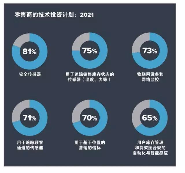 在实时可视化方面,零售商想投资的技术包括安全传感器、用于追踪销售库存状态的传感器、物联网设备和网络监控,以及用于追踪顾客通道的传感器等等。也就是说,在未来,也许当你进入一家超市后,这些电子设备是感知你的行走路线的,并能实时监控货品等的安全!