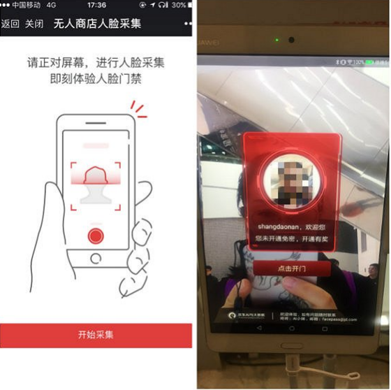 整个信息录入过程大概需要2-3分钟,一旦录入成功,便利店即可通过人脸识别识别出相应信息,点击平板电脑上的开门键,即可进入便利店。