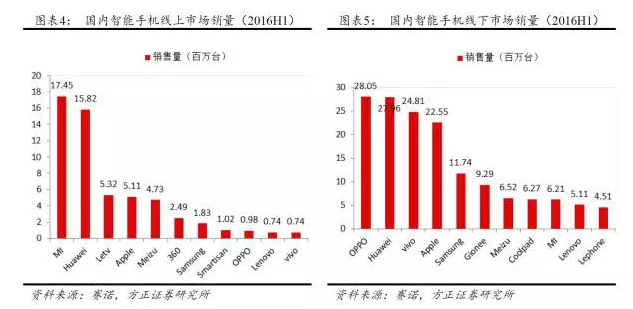 以产品起家,小米进军线下零售为其产品铺路。近几年来“蓝绿军团”OPPO和VIVO线下渠道疯狂扩张,以OPPO为例,从一线城市到乡镇,OPPO在全国有20多万个销售点。据赛诺统计,2016年上半年国内智能手机线上市场,小米以1745万台排名第一,但线下渠道只有621万台。而线下市场OPPO和VIVO则以2805万和2481万的销量位居第一和第三。小米还是落后于OPPO、VIVO、华为等手机品牌,成为小米快速战略布局线下的重要原因。