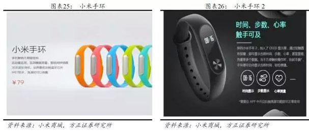 华米聚焦于智能可穿戴产品,2014年1月获得了小米投资。小米手环于2014年7月22日发布,定价为79元。目前累计销量已经超过 3000 万块,华米2017Q1销量一举超越巨头厂商 Fitbit,成为全球第一可穿戴设备厂商。小米手环是“小众产品福斯化”战略成功的例子——传统的手环价格门槛高(500元以上)、功能分散繁杂、产品缺乏黏性。小米手环聚焦90%以上用户的需求,聚焦少数核心功能,服务于用户的刚需,创造出高性价比的爆款产品。