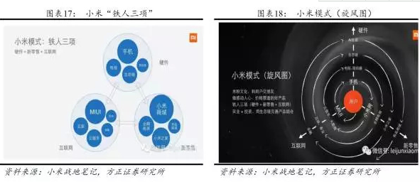 ①小米、苹果均是以技术、产品为驱动的公司。从拳头产品手机出发,研发周边衍生产品。