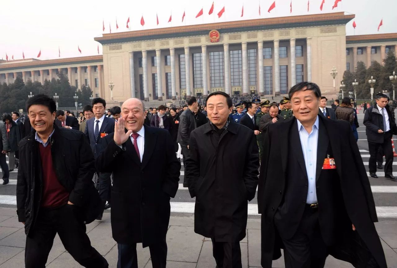 ▲ 2012,全国两会,浙江万向集团的鲁冠球(左二)、娃哈哈集团的宗庆后(右一)出席预备会