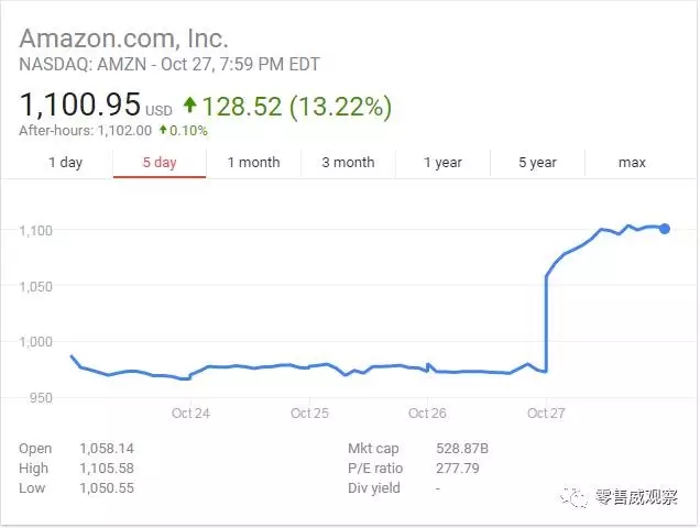 所以,当这份财报发布后,亚马逊当日股票大涨13.22%也就在情理之中了。