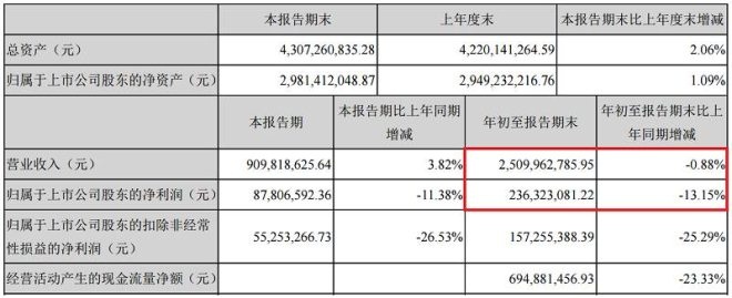 10月30日,“瓜子大王”洽洽食品股份有限公司(以下简称洽洽食品)最新公布的业绩似乎不太能令投资者满意。前三季度,洽洽食品实现营业收入25.10亿元,同比下降0.88%;实现归属上市公司股东的净利润2.36亿元,同比下降13.15%。
